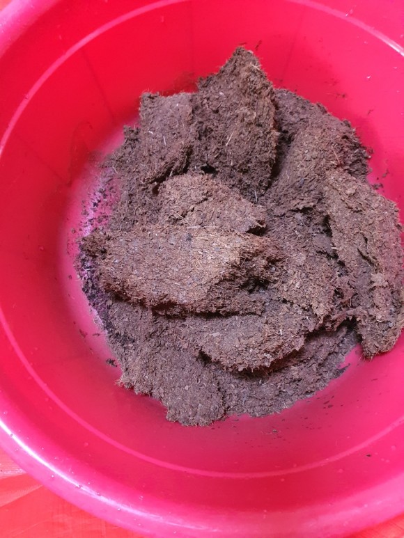 대야가 생각보다 큰데 코코핏 5분의 1분량이 저만큼 들어있었어요.도대체 얼마나 큰지.. 떨린다..