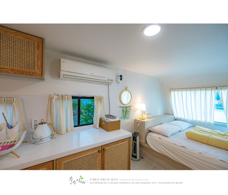 카라반 내부 침대 매트리스는 일반적인 기성 사이즈가 아니라서 맞춤으로 진행되었습니다.베개커버, 이불커버, 침대패드와 방수원단으로 만든 방수 매트리스 커버까지 풀세트로 제작하고 있습니다.실제로 숙박시설이라고 해도 시설의 성격에 따라 호텔식 침구로 맞춤 제작하지 않고 눌포잼이 판매중인 제품이라도 구입해주고 있습니다.