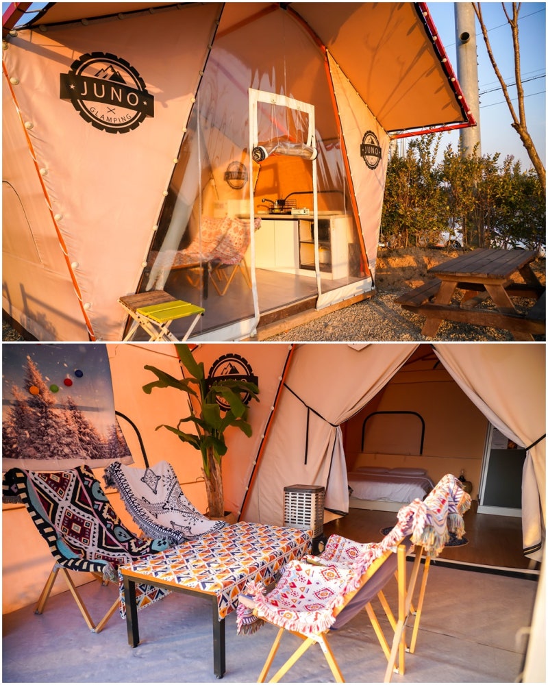 오늘 소개드릴 납품건은 경상남도 사천에 위치한 카라반 캠핑장 침구세트 주문제작입니다.
