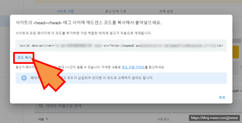 앞으로 약 1시간 정도면 자동광고가 본인의 워드프레스 사이트에 적용되어 있음을 확인하실 수 있습니다.