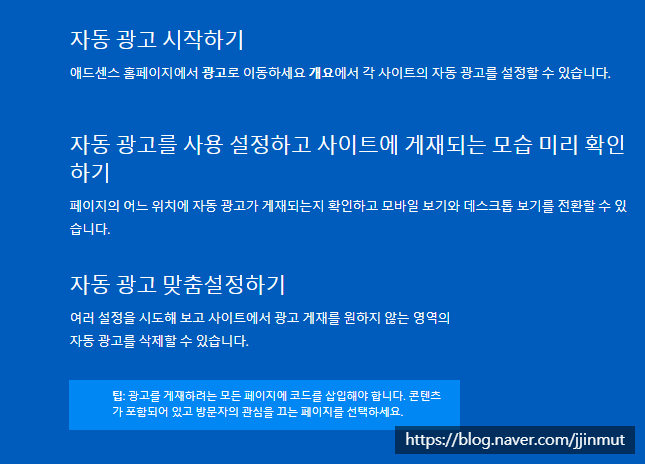 저는 이제 막 시작했기 때문에 꽂히는 곳을 신경 쓸 필요가 없는 자동광고를 이용해 보기로 했습니다.