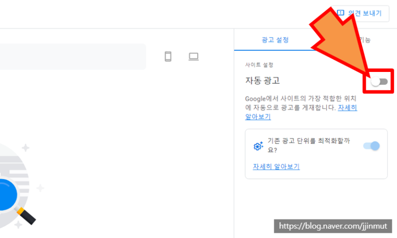 2. 자동광고 버튼 오른쪽으로 누르고 On!
