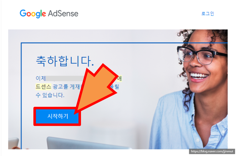 - 구글 애드센스 코드 복사1) 구글 애드센스 승인 메일에서 [시작하기]를 누릅니다.