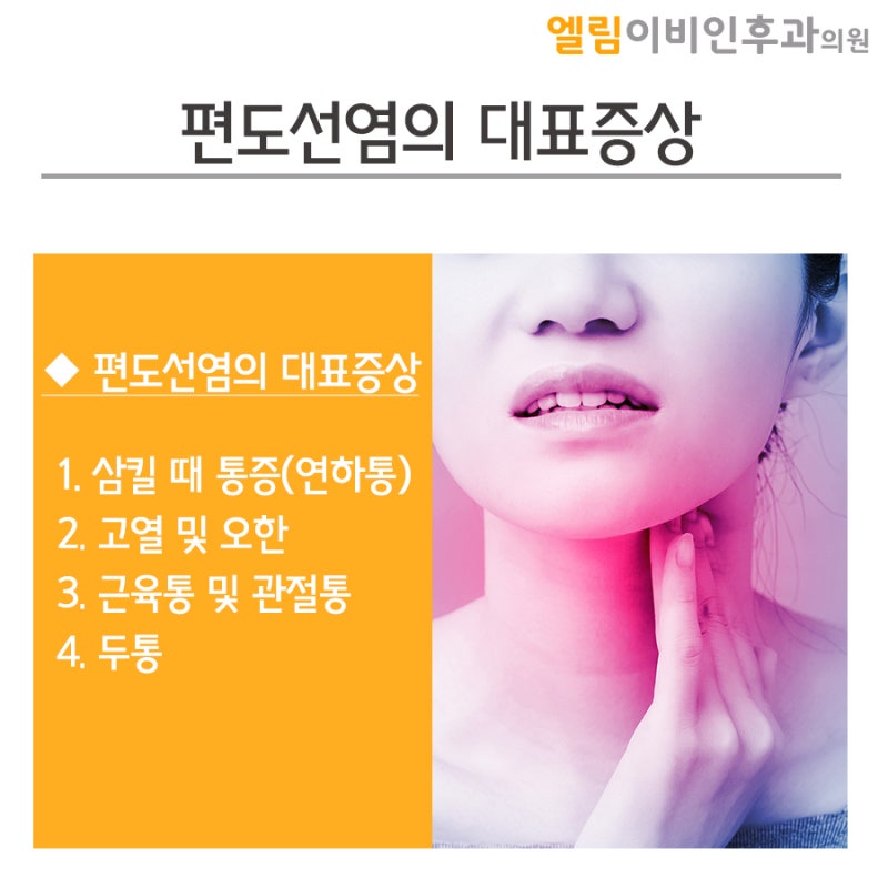편도선염은 우리 몸의 면역력이 떨어지면 걸리기 쉬운 질환입니다. 목 안쪽에 위치한 편도가 외부에서 들어오는 세균이나 바이러스에 감염되어 염증을 일으킵니다. 편도선염에 걸리면 평소보다 피곤하고 열이 나는 등의 증상이 나타납니다. 이 때문에 감기로 오해하기 쉽습니다. 이런 증상 외에 목의 이물감이 느껴지거나 침이나 음식을 삼킬 때 불쾌감이 나타나면 편도선염을 의심할 수 있습니다.