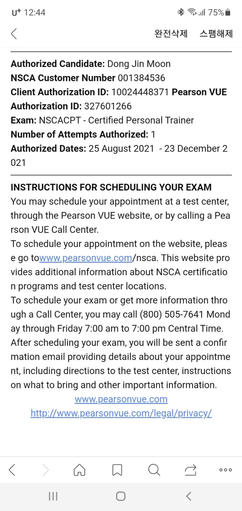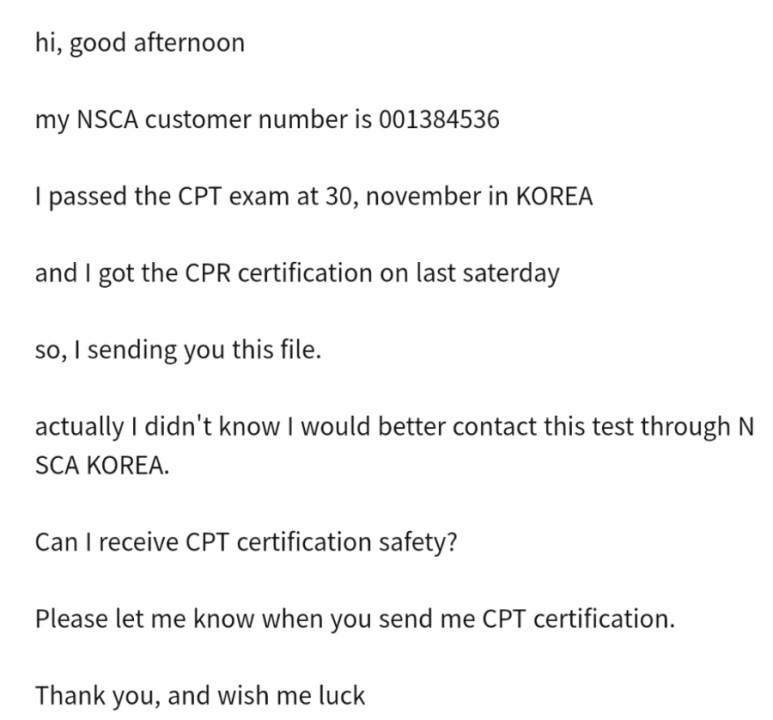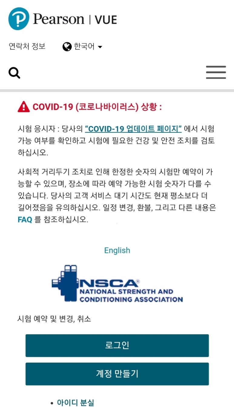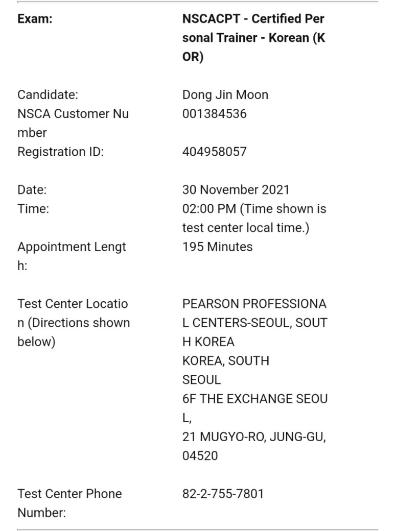 하지만 시험을 볼 수는 없어요. nsca 회원번호가 필요하네요. nscakorea에 알아보니 연회비가 지불되면 회원번호를 받을수 있다고 합니다.