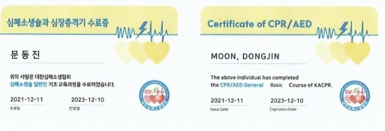 CPR/AED 이수는 대한심폐소생협회와 적십자를 통해 수료가 가능하다.