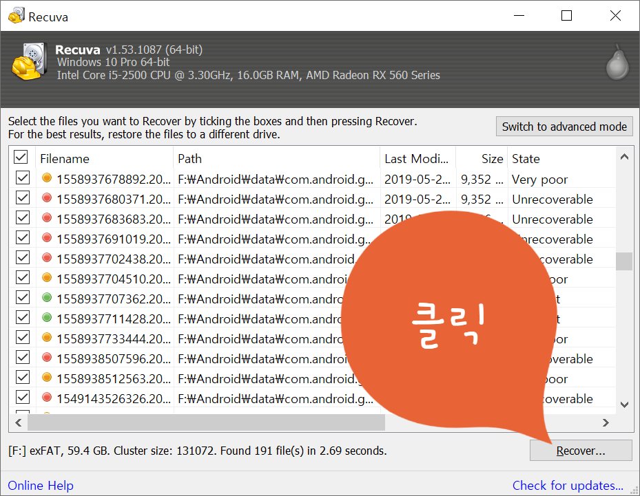 파일 복구 소프트웨어 Recuva 간단 사용법 파일 복구 소프트웨어 Recuva 사용법 따라하기