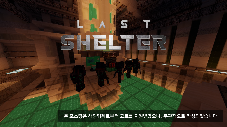 메타버스 게임이 최근 상당히 핫한 이슈 중 하나로 떠오르고 있는데 마인크래프트도 상당한 자유도를 가진 게임으로 예전부터 많은 주목을 받았다는 사실은 아실 겁니다. 특히 블록을 이용하여 건축물이나 지형의 지물을 자유롭게 창작할 수 있다는 점에서 ‘게임계의 레고’라고 불리기도 하였는데, 이번에 인천관광공사의 주도로 마인크래프트 인 게임에 송도국제회의복합지구를 구현한 작품이 있다고 하니, 이 부분에 대해 이야기를 나눠보고자 합니다. ‘라스트 셸터’ 얘기예요 ‘라스트 쉘터.
