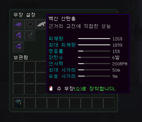 시나리오가 시작되면 가장 먼저 비행기에서 무장을 선택할 수 있습니다 이때선택하는무기를이용하여바이러스를무력화시키면서최종목적지까지이동해야하기때문에신중하게판단하는것이좋습니다. 일반 마인크래프트 무기가 아닌 산탄총, 돌격소총 등 라스트셸터 서버 전용으로 개발된 각종 총기로 구성되어 있으며, 각각 반동이나 화력 등의 특성이 다르기 때문에 플레이어에 적합한 요소를 선택하는 것이 가장 합리적입니다.