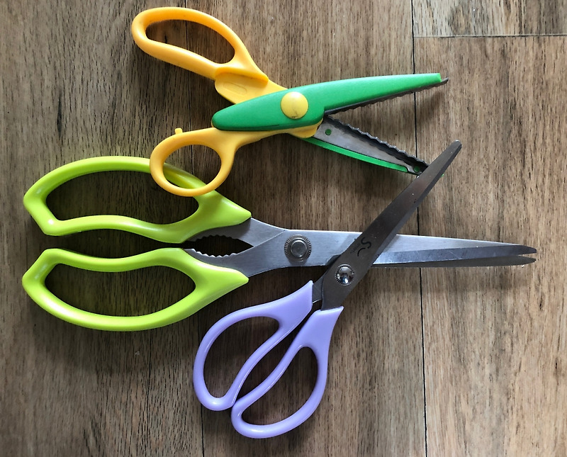 종이깎이 가위와 함께 자주 사용하는 재단용 가위를 갈아보려고 한다.큰 것은 1990년에 엄마가 일본 여행을 다녀오셔서 사주신 30년이 넘은 가위로 의류학과 학생 때부터 지금까지 쭉 쓰던 가위다. 오래되고 내 손에 비해 너무 크지만 재단할 때 이 가위만큼 큰 편한 가위가 없다. 그래서 다른 많은 재단가위들이 새로운 채로 가위통에 들어있어 이것만 사용하게 된다.그 밑의 가위는 그보다 미미했지만 그래도 20년은 지난 99년도 홍대 작업실에서 사용하던 가위인데 작고 자주 사용하던 재단가위다.사용에는 지장이 없지만 칼날을 세워보기로 했다.