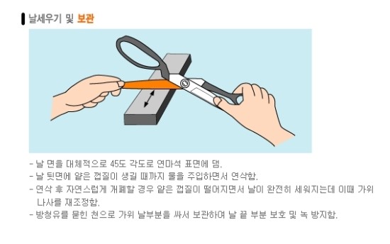 가위를 갈면서 중간에 물을 적셔줘야 한다. 단순하지만 시간을 많이 투자해야 한다.가위 하나당 5분 이상 해야 하니까 가위 하나까지 20분 넘게 걸린 것 같다.숫돌을 잘 못하지만 자주 사용하면 더 좋아질 거야. 시간도 빨리 가고, 바스락거리는 소리가 나면서 노는 것 같아 즐거웠다.