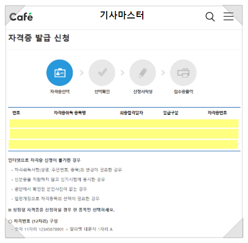 큐넷 자격증 사본 발급 방법은 아래 링크를 통해 확인해주세요!대한민국 모임의 시작 네이버 카페 cafe. naver.com 큐넷 자격증 사본 발급 불가 시 큐넷 자격증 사본 발급 시 인터넷으로 신청하지 못할 수 있습니다.
