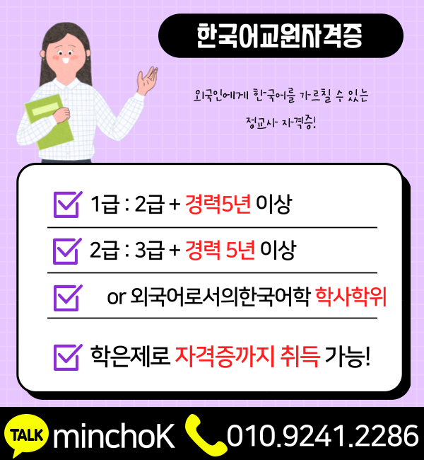 한국어 교사 자격증을 따려면 외국어로서의 한국어학이라는