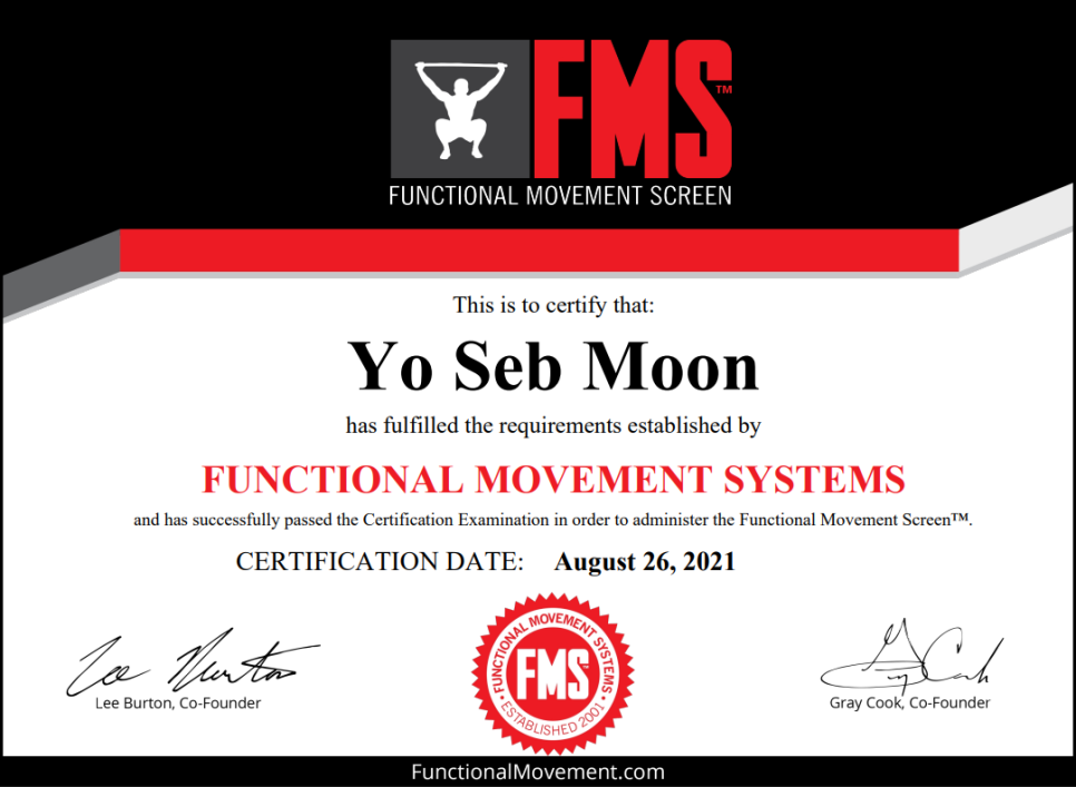 오늘은 FMS 기능적 움직임 평가 자격에 대해서 포스팅 하려고 합니다.
