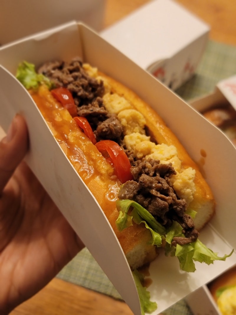 훈제에그, 스크램블에그, 불고기흠스, 더반미, 콘치즈, 칠리새우튀김까지~ 테이블에서 맛보셔도 되지만 오늘은 테이크아웃하여 매일 아침 식사 대용으로 맛볼 예정입니다.