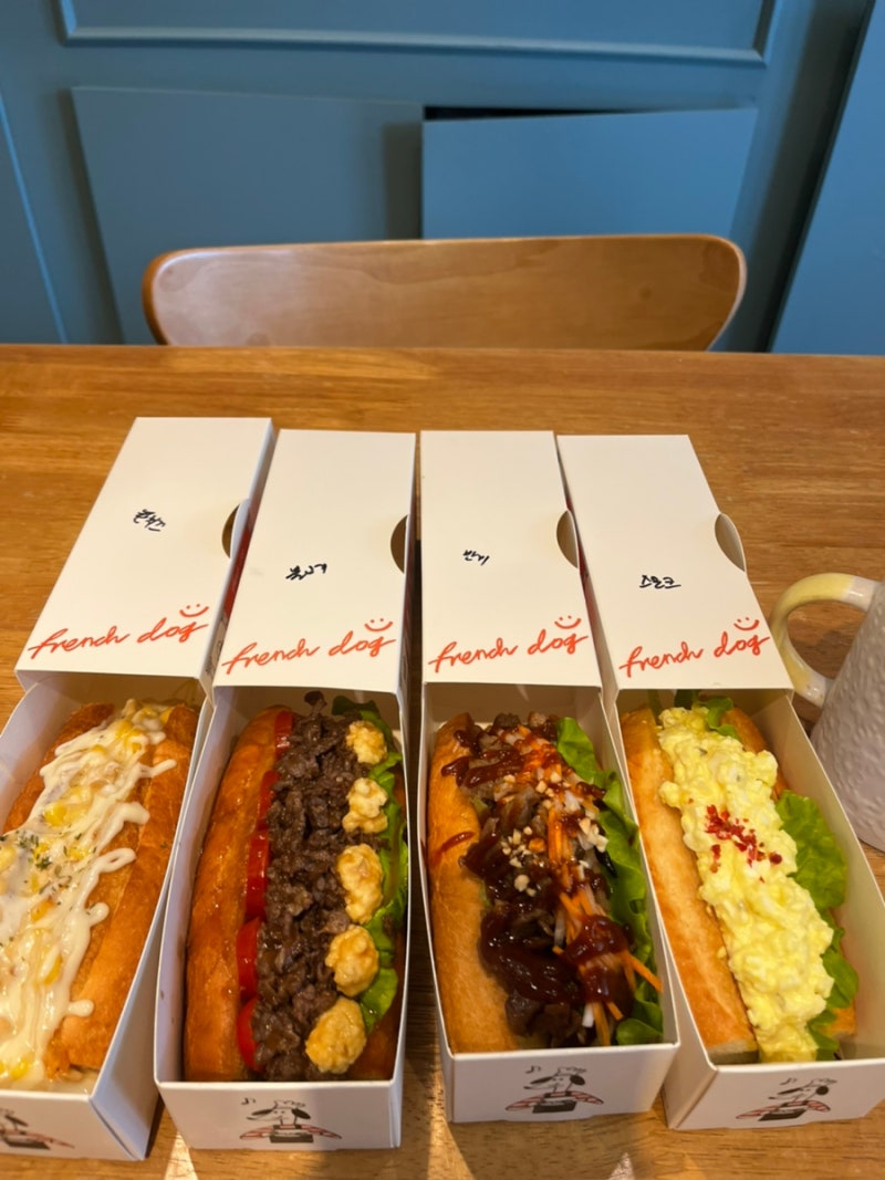 프렌치독은 강아지가 그려진 귀여운 캐릭터로 도시락도 샌드위치 핫도그에 딱 맞게 제작됐고 디자인도 느껴졌습니다. 테이크아웃해서 피그닉에 가고 싶은 감성도시락입니다.