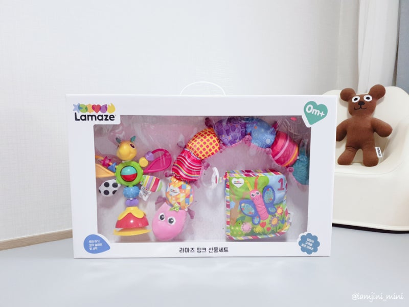 임신 마지막 달쯤 아기 용품과 신생아 장난감을 검색해 알게 된 사실이 있다. 오늘 리뷰할 제품이 바로 국민 육아 아이템 중 하나라는 것이다. 계속 검색해보고 sns만 들어가봐도 쉽게 알았어. 아기 옆이나 주변에 항상 놓여있던 장난감! 예비 엄마부터 미리 준비하는 분들도 많아서 저도 조리원에 있으면서 뽀뽀 첫 감각 자극용으로 집에 넣기로 했다.라마즈 핑크 선물세트 가격 64.900원 (뮤지컬자극모충, 나비흡착장난감, 123 숫자놀이포본)
