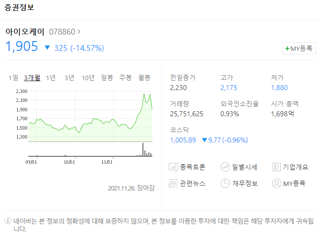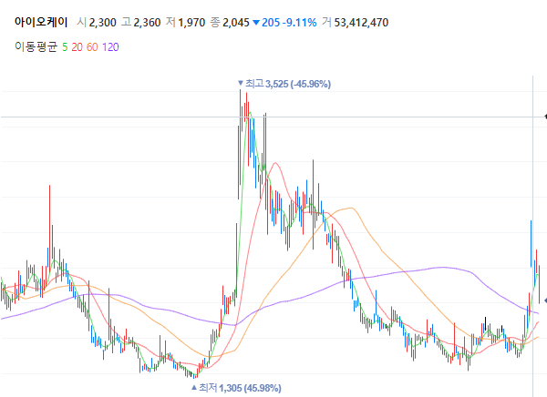 아이오케이의 주가 변동