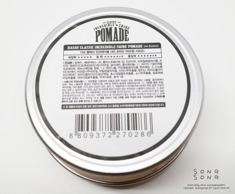 다슈포마드 왁스세척력★★★★★광택★★★★★홀딩력★★★★★