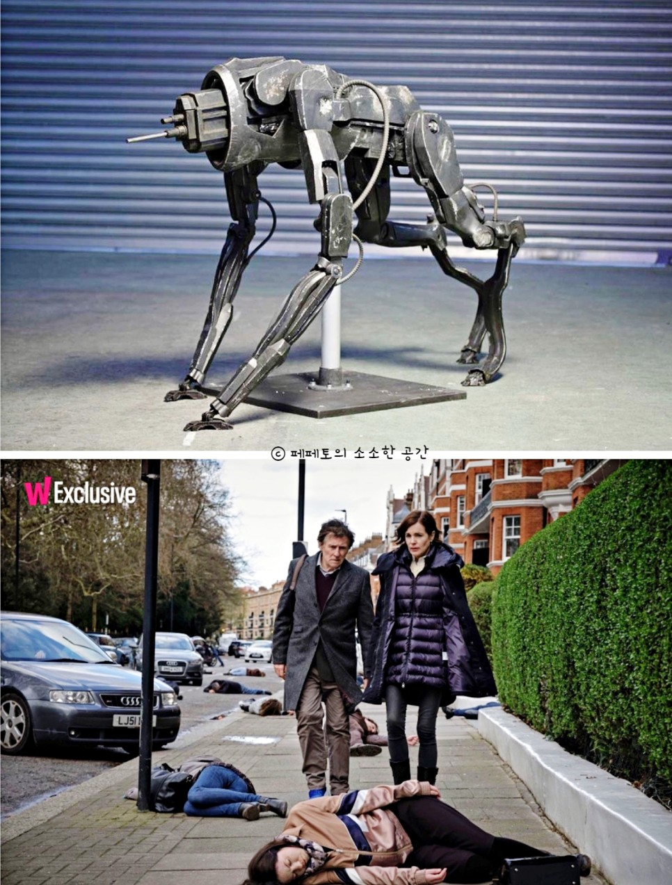 간신히 살아남은 사람들은 무슨 일이 일어났는지 파악하기 전에 괴상한 모습의 우주 로봇에게 살해당하는데… 위에 머리 없는 형태의 외계 무기가 인류를 응징하는 살인 로봇입니다.저 한가운데 드릴 같은 장치가 앞뒤로 움직이면서 사람의 몸을 참혹하게 관통합니다.그들로부터 도망치는 것도 무의미하기 때문에 인간은 어찌할 도리가 없었습니다.
