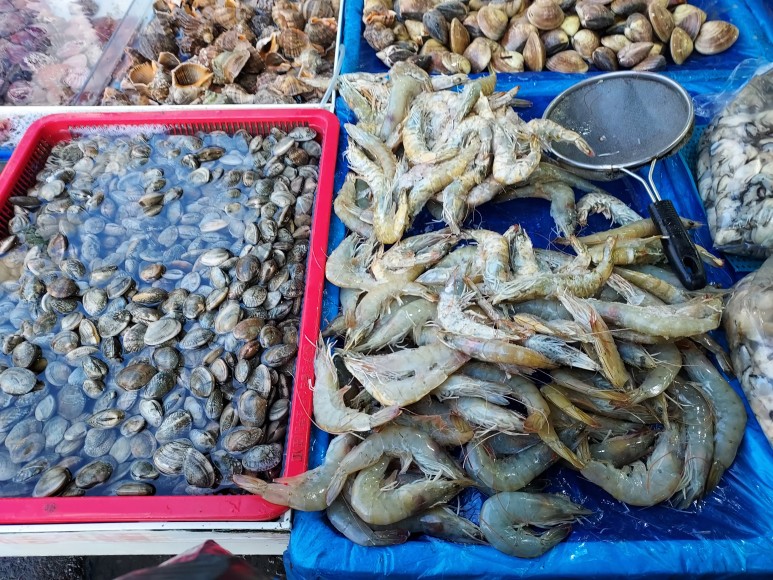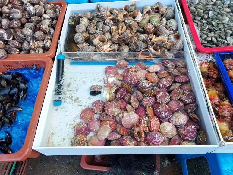 그리고 고흥수산에서는 우리 집 서열 1위가 아주 좋아하는 새우를 구입한다사장과 새우에 대해 이야기하는 동안 이놈들이 중간에 침을 뱉고 운동화를 적신다.이 가리비들이 덜렁거리는 것 같다. 침을 뱉는 것이 상당한 실력급이다. 고흥수산 사장은 가리비들이 숨을 쉰다고 한다.(웃음)