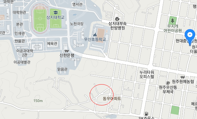 위에서 위치는 우산동이라고 말씀드렸습니다.지도를 자세히 보면 상지대학교가 있습니다.카카오 지도나 네이버 지도에서 이 주변을 더 자세히 보면 한국전력공사, 삼양식품, 철도공단 등 회사도 많습니다.원주의 다른 대학 위치는 학교 외에는 원, 투룸 수요를 뒷받침할 곳이 없기 때문에 학생 수가 줄어들면 그만큼 타격이 크지만 우상동은 대학 이외에도 수요가 있어 추천했습니다.