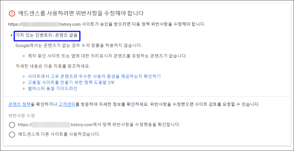 위반사항?! 티스토리 블로그는 불발! ●구글 애드센스 대란에 편승하려다
