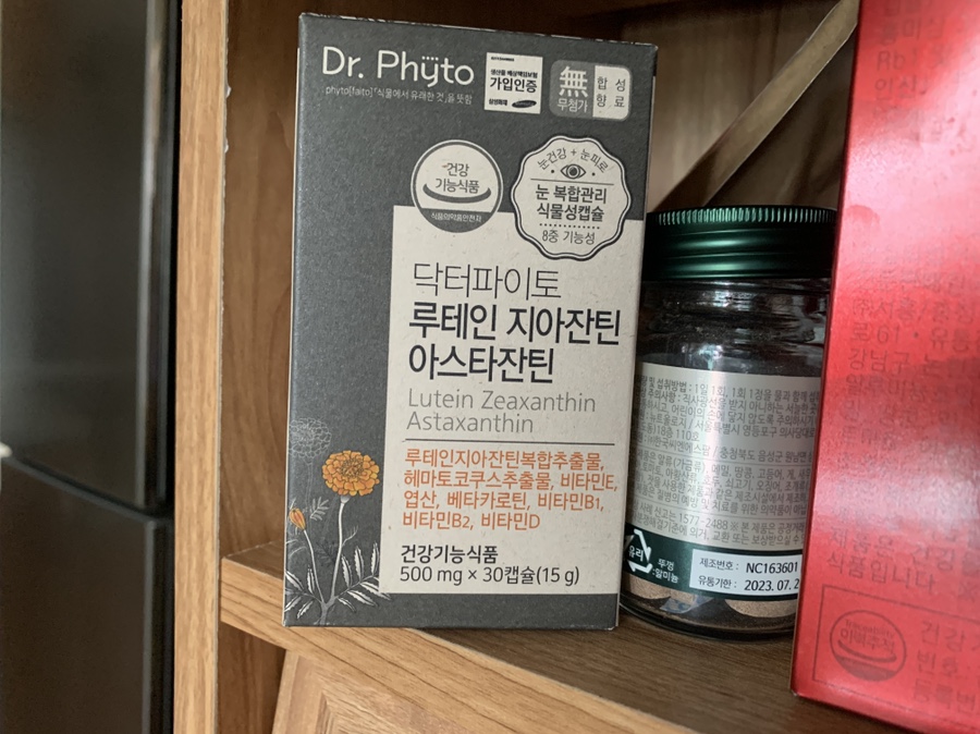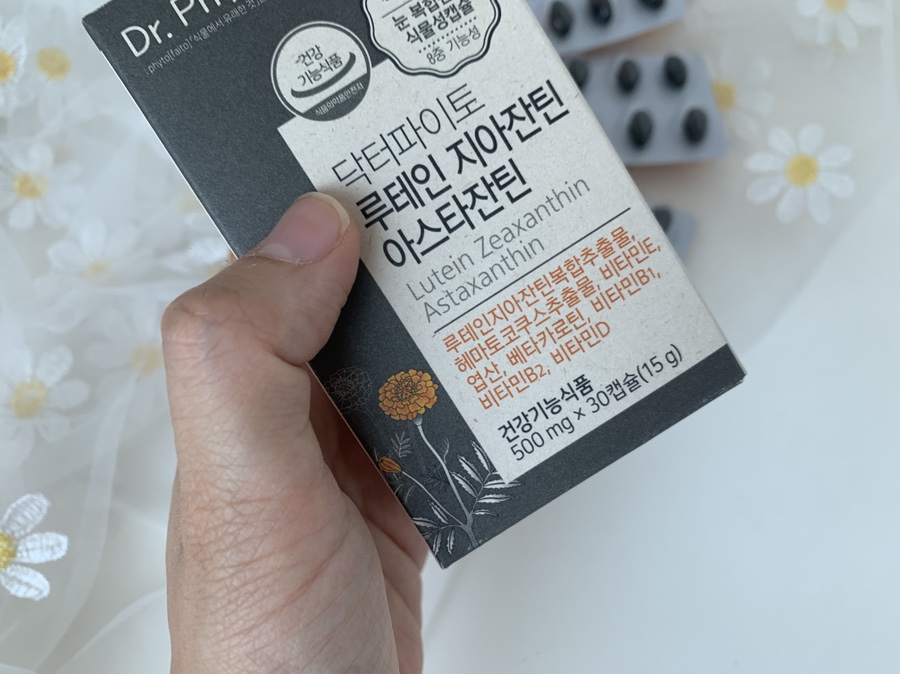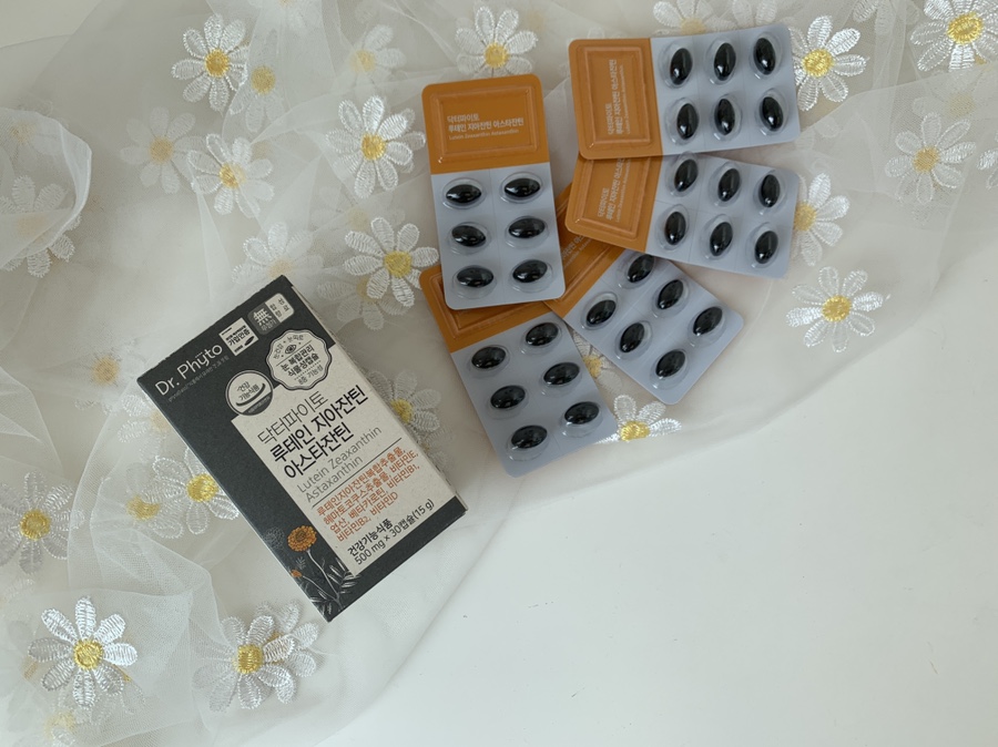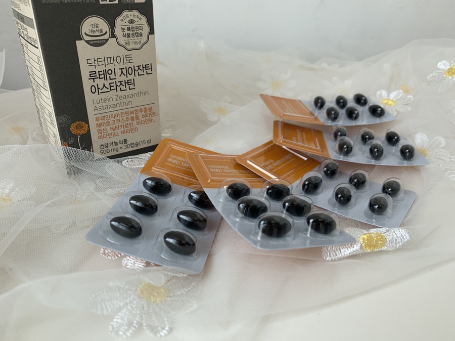 눈 건강의 핵심 원료인 루테인, 디아잔틴이 5:1의 비율로 되어 있습니다.게다가 당근에 들어 있는 베타카로틴도 포함되어 있습니다.아스타크산틴은 비타민 E보다 110배나 높은 강령 산화력을 가지고 있다고 합니다.