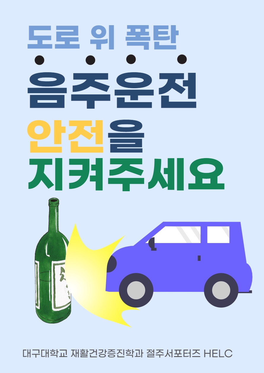 포스터의 내용은 잘 확인하셨나요?위 포스터의 내용물이 가득이라도 술을 드신다면 대리인을 불러 운전해주세요!술을 마신 후의 운전은 정말로 움직이는 폭탄입니다.
