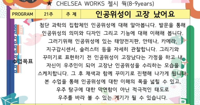 오늘의 주제 ‘인공위성이 망가졌어요’는 과학을 좋아하는 써니의 상상력을 활용할 수 있었던 아주 좋은 주제였던 것 같다.