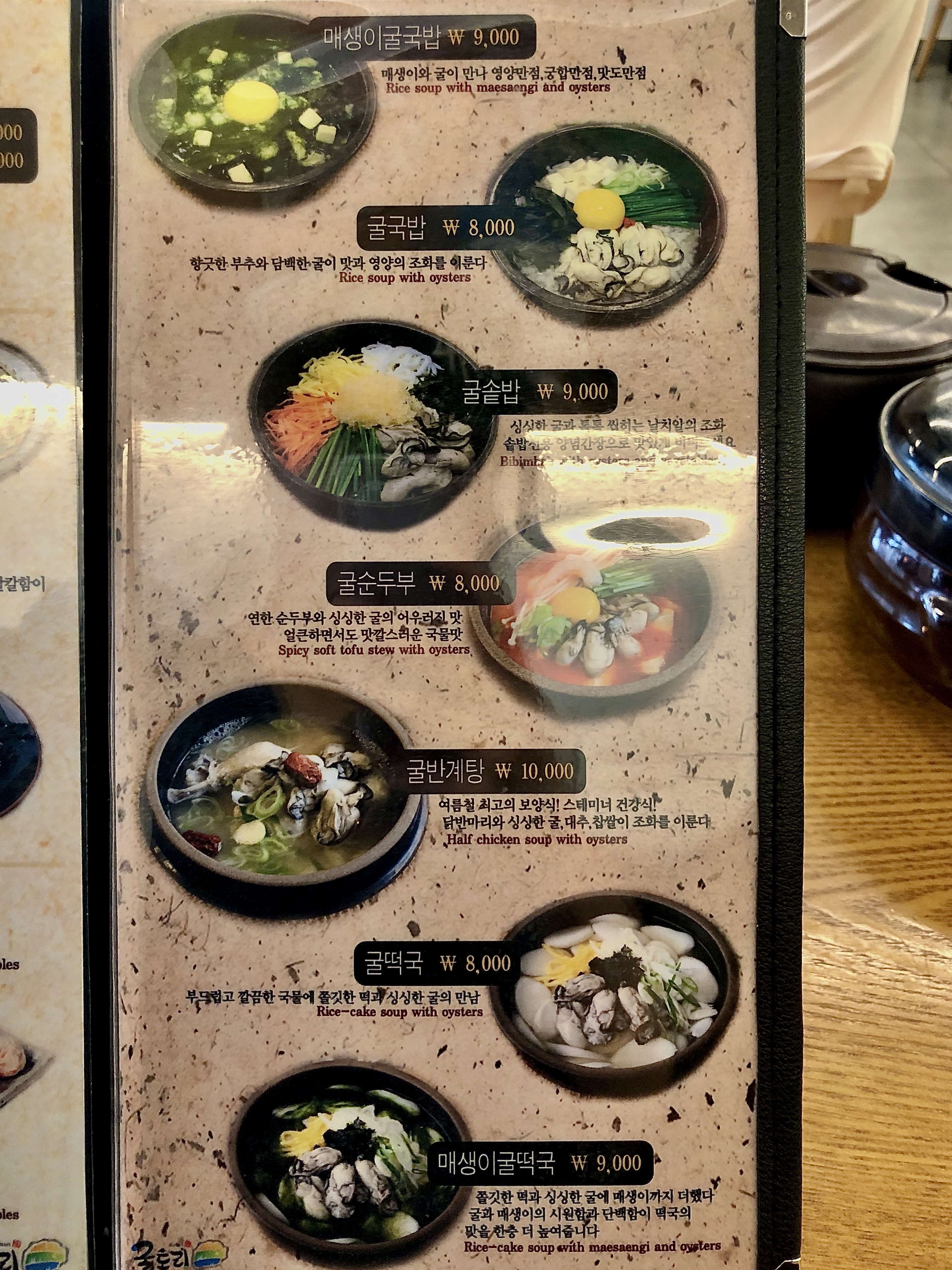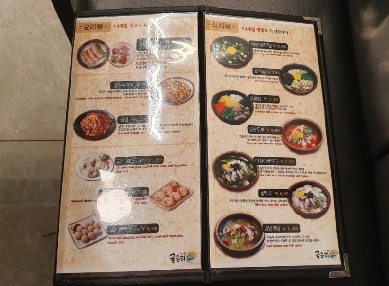 대표 메뉴인 굴 국밥을 비롯하여 굴 솥밥에 굴떡, 생굴무침 등 다양한 굴요리가 있다.