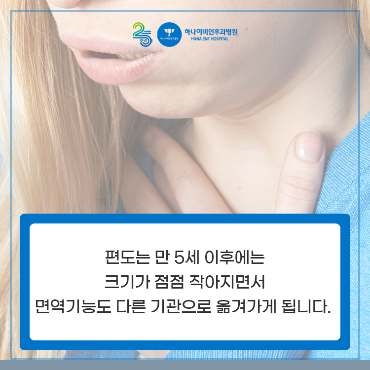 입을 크게 벌리고 입안을 보면 목젖 양쪽에 볼록한 편도가 있습니다. 어릴수록 두꺼워 보이지만 성인의 경우 편도가 작아져 거의 보이지 않습니다. 편도는 입으로 유입되는 세균이나 바이러스를 막는 1차 방어 메커니즘 역할을 합니다. 그러나 만 5세 이후에는 편도의 크기가 점점 작아지고 면역 기능도 다른 기관으로 넘어가게 됩니다. 간혹 성인이 되더라도 편도의 크기가 작아지지 않으면 편도염에 걸리기 쉬우므로 편도결석이비인후과에서 검사를 받는 것이 좋습니다.