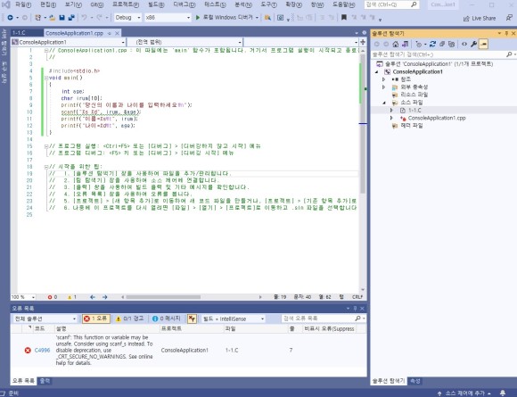그런데 C언어 기초독학 과정은 점점 어려워진다.기껏해야 다 쓰면 오류가 나지 않을까, 디버깅이 오류가 나서 언어값이 틀렸다고 뜨지 않을까.ㅠㅠ역시 독학의 길은 너무 어려운 것 같다.