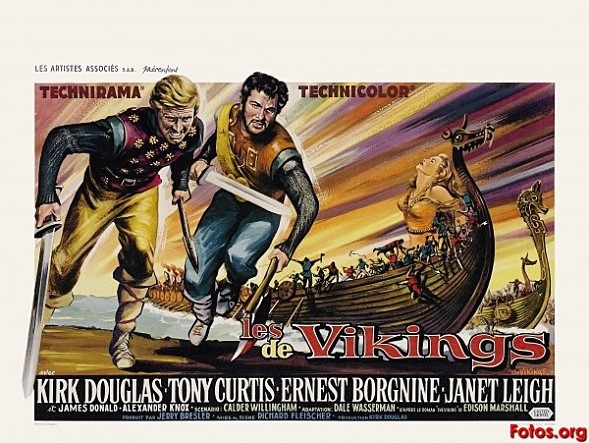 커크 더글러스, 토니 커티스, 어니스트 보그나인, 자넷 리 주연의 액션영화 바이킹이