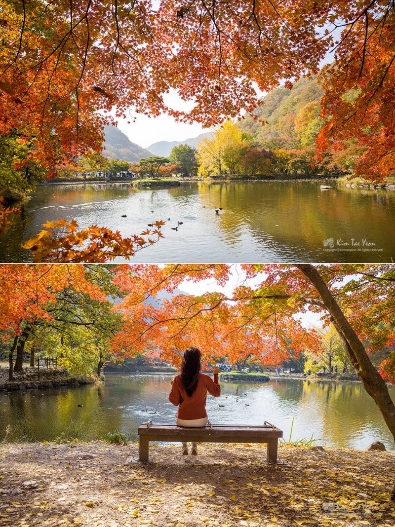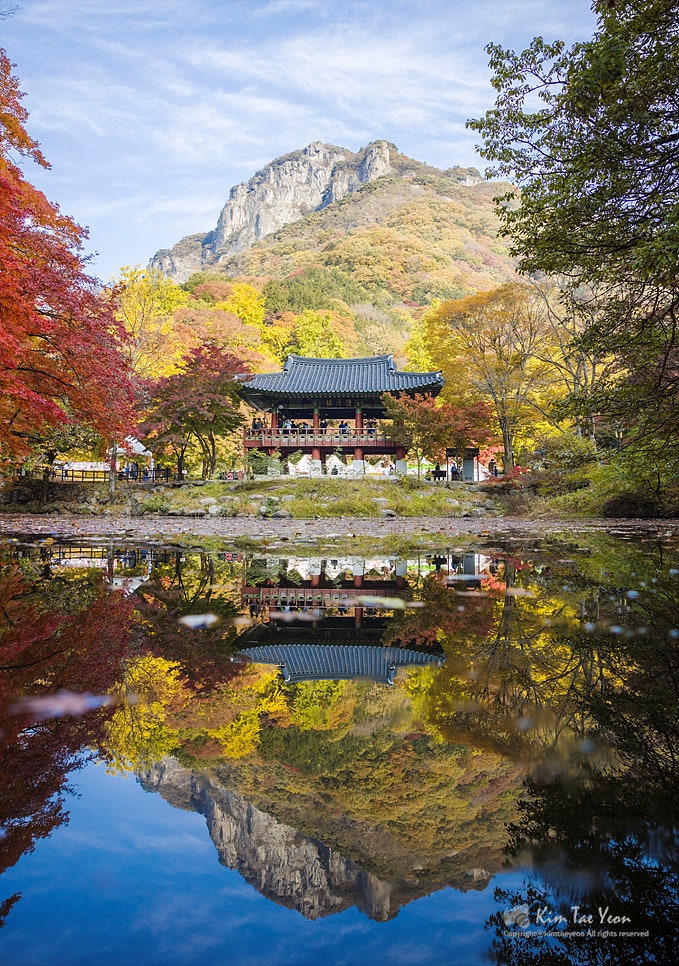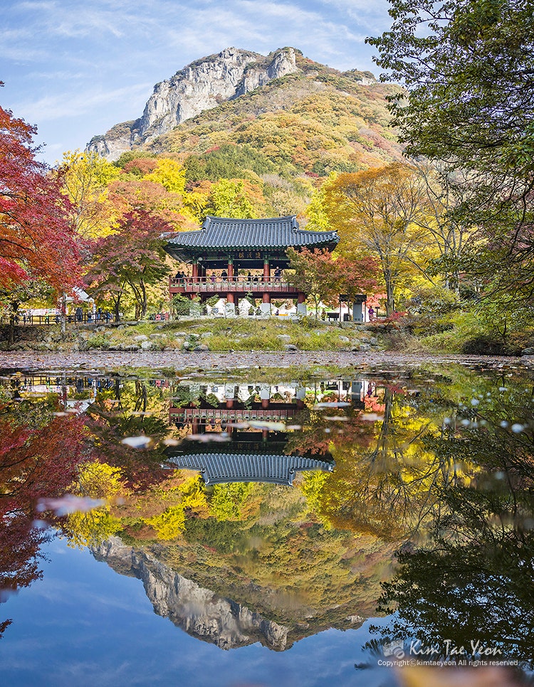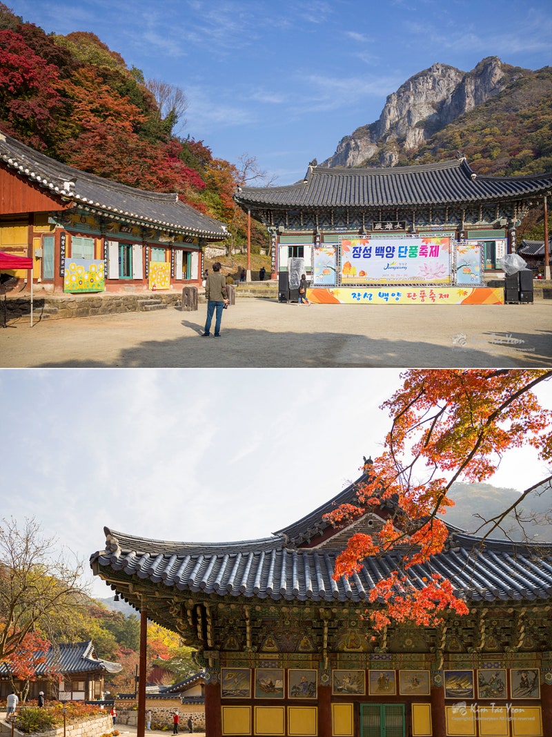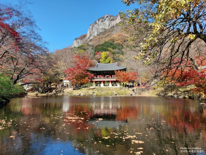 早い時間でしたが、お寺内の喫茶店がオープンし、温かいお茶が飲め、コーヒーとナツメ茶を一杯飲みましたね。長城の白羊寺 秋の紅葉 全羅南道 旅行地 おすすめ白岩山と空まで反映をすべて盛り込むには広角レンズが必要ですが、標準レンズしかなくてとても残念でした。縦に2枚つけて合わせてみました。白岩山と一緒に殿閣を一緒に入れてもきれいですが、私が行った時、100%紅葉が入っていないのが少し残念でした。紅葉が100%入っていたらもっときれいだったと思います。紅葉は光があった方がずっときれいだと思います。もう少し泊まっても待ってよかったという気が。白羊寺の紅葉は完全に赤く染まっておらず、緑の部分が多かったのですが、今週はほとんど赤く染まっているのではないかと思います。10時30分が過ぎた時刻、完全に日が入ってきましたが、むしろ日が全体に入ってくると光が強いからか反映写真はもっときれいではなかったです。水上で悠々と遊んでいるアヒルたちと、団体で旅行に来られた旅行客たちとイチョウの木の反映もとてもきれいでしたが、ここも少し早く盛り込めば風景がきれいだったと思います。時間が経つにつれて少しずつ光が入り始めましたが、光が入る方向に沿って清涼院方向に少し上がってみました。 3.白羊寺(ペクヤンサ)全羅南道長城郡北下面(チョンラナムド·チャンソングン·プクハミョン)白羊路(秋に全羅南道旅行先の長城の白羊寺に行ったら、双渓楼の反映写真を撮ってみてください。多くの方々が双渓楼の反映を盛り込むために白羊寺を訪れたりもします。双渓楼は1351年に初めて創建されたが、韓国戦争の時に焼失した。 現在の双渓楼は1986年に建設されたそうです。白羊寺の寺院内部は規模が大きくないので、回るのに時間があまりかからない方ですが、光が入ってきて白岩山の背景に写真を撮るときれいでした。ここは写真陣の秋の出仕地としても有名で、秋のシーズンになると三脚を広げて反映を撮るために待っている方々が多いのですが、私が行った時は予想はしましたが、思ったより人が多くありませんでした。ここで写真を撮る時は石橋の空間が広くないので、配慮しながら写真を撮らなければならないと思います。この日の朝、ある方が写真を撮ることのために大声を出して険しいことをおっしゃっていました。光が入り、楓にも光が染み込み、双渓楼と一緒に入れるとまたきれいですね。白岩山と双渓楼の反映を見るために最初に薬水川石橋に行きましたが、8時30分弱の時間でしたが、光が入らず、広角で撮影してこそ横画角に全体風景が映し出されました。 そして白岩山の紅葉がまだあまり染まっていない状態でしたが、薬水川には落ち葉がたくさん落ちていて、反映がきれいではありませんでした。駐車後、薬水川を通ることになったのですが、出てくる時に見て回ることにして双渓楼の方に上がりました。 2.白羊寺双渓楼お寺の中に入ると、大雄殿の前に設置されている構造物や展示物のため、少し慌ただしく見えました。双渓楼の方はまだ光が入っていませんが、白羊寺の寺院内には光が輝いていました。私たちは当初の計画は1時間ほど後に出ようとしましたが、思ったより日が遅く入ってきたため、はるかに滞在することになりました。下から白岩山を眺める風景もきれいですが、白岩山から下に見下ろす風景もきれいだと思います。 山内庵の中で薬師庵という1kmの距離にありますが、薬師庵から白羊寺と渓谷を見下ろすことができます。後で一度登ってみたいと思いました。白羊寺の紅葉は今週の方がきれいだったんじゃないかと思います。光がもう少し入ってきた時、 また双渓楼の反映を見るためにまた行きました。やっぱり光がない時より、もう少し光が入った時の方がずっときれいでした。この時は薬水泉まで光が入ってきた状態ではありませんでした。