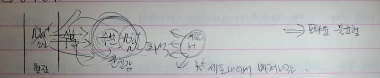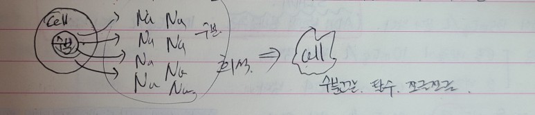 이것 또한 학교에 다닐때 노트에 정리되어있는 그림에 도움이 되거나 올립니다. 세포외에 Na농축→ 세포내에서 수분이 나온다→ 세포외의 농도를 희석→ 세포 수분고갈