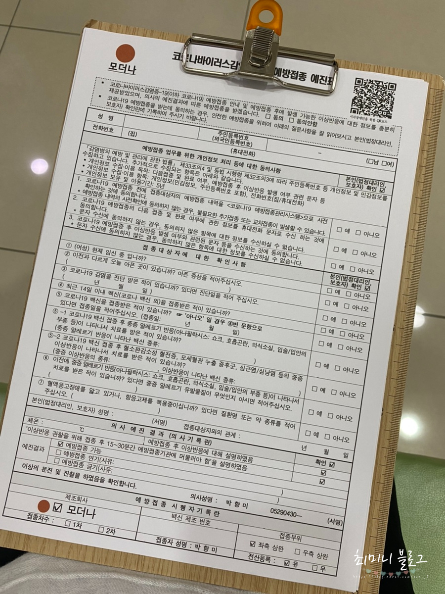 안녕하세요. 민희입니다. -) 제가 드디어 코로나 백신 1차 접종을 마쳤습니다.