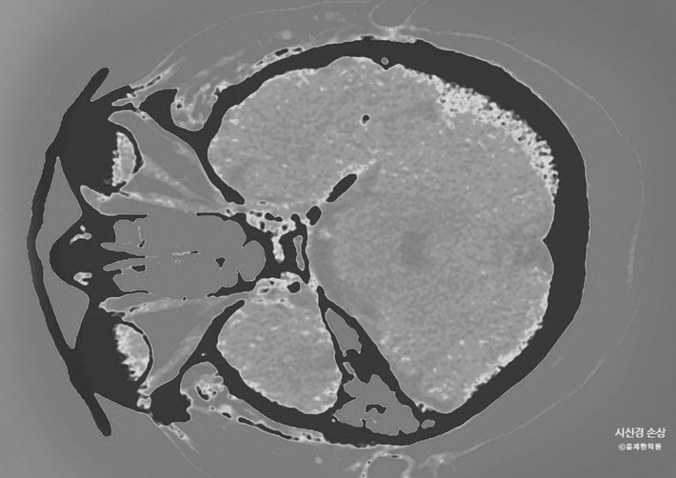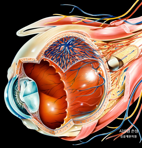 시신경은 1 개처럼 보이지만 실은 여러 개의 신경 섬유로 이루어진 구조입니다.
