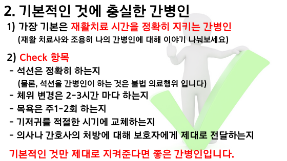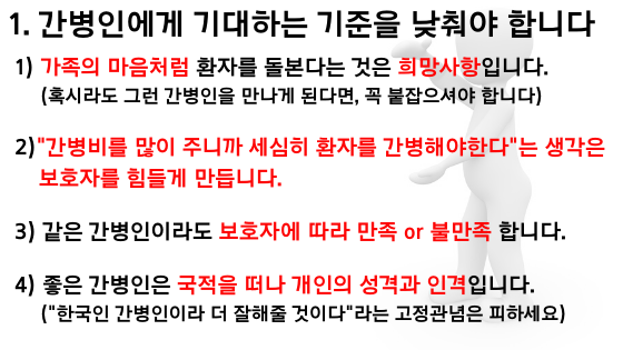 그러면 아픈 환자들을 위해서 이렇게 많이 관리해주는 간병인을 아무나 찾으면 안되겠죠?간병인을 구하는 요령에는 어떤 것이 있나요?