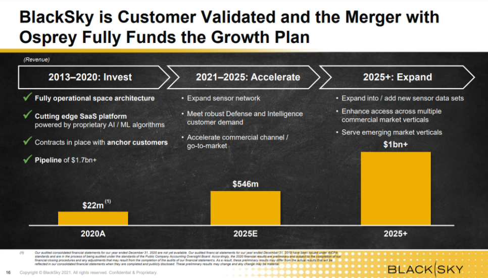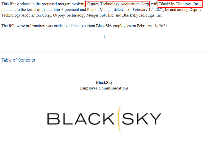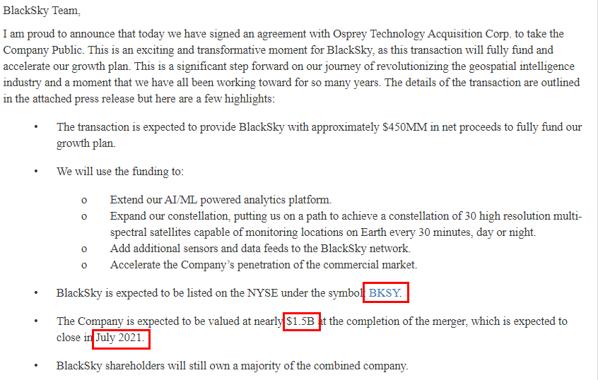 블랙 스카이(BlackSky)라고 하는 기업과 합병하는 것이 DA로 발표되었다.