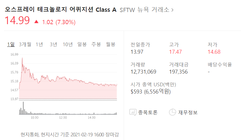 SFTW는 뉴욕 거래소에 상장되었는데 이름에서 알 수 있듯이 스펙 기업이다.