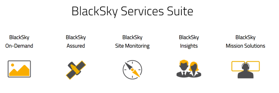 블랙스카이는 현재 상업용 위성 5기가 있으며 2021년 별자리에 9기의 위성을 추가할 예정이다.블랙스카이 기업의 궁극적인 목표는 30개 고해상도 다중스펙트럼 위성의 별자리를 주야 30분마다 관측하는 것을 목표로 하고 있다.
