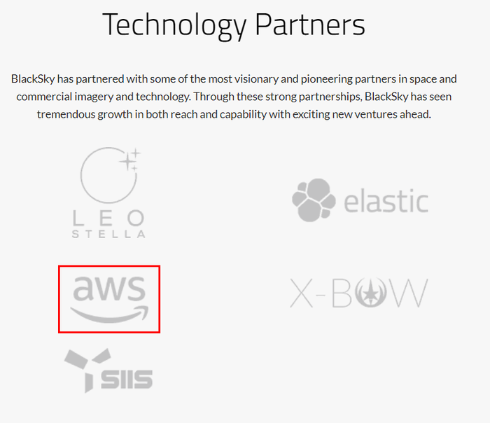 또 블랙스카이 파트너는 이런데 클라우드 1인자인 AWS 아마존도 기업 파트너 관계를 맺고 있다.