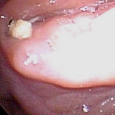 편도결석이란? 편도 표면에 있는 작은 구명(편도)에 음식물 찌꺼기 등과 편도선에 분비되는 물질이 뭉쳐 생기는 좁쌀만한 크기의 입자를 말합니다.