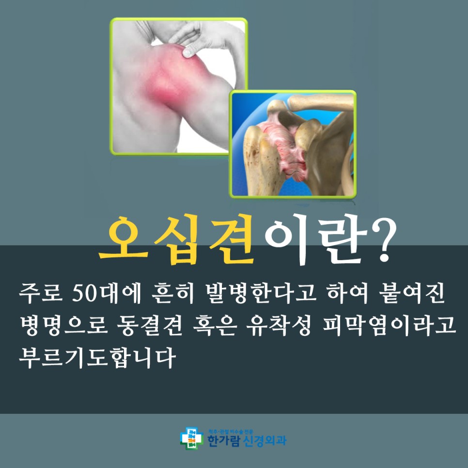 어깨 통증을 유발하는 대표적인 질환인 오십견은 한국인이라면 흔히 들어볼 수 있는 이름입니다. 이 오십견은 유착성 관절낭염이라는 정식 명칭이 존재하는데, 이러한 이름이 사용되는 것은 질환의 발생 양상에 따른 것입니다. 오십견이라는 표현이 더 유명한데, 자주 사용되지 않는 이유는 질병 발생 원인에 대한 오해를 유발할 수 있기 때문인데 현재까지 이 질환은 명확한 발생 원인이 알려져 있지 않아 신체 노화와 대사 관련 이상이 발생에 영향을 줄 것으로 추측되고 있으나 이는 추측일 뿐 정확한 정보라고 할 수 없습니다.