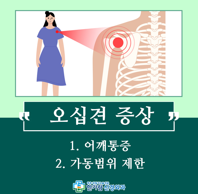 질병이 발생했을 때는 팔의 움직임은 그다지 부담이 되지 않습니다. 하지만 이와 달리 통증이 크게 나타납니다. 질병 발생 초기에는 계절과 시간에 영향을 받는 특징이 있습니다. 추워지는 계절에 통증은 더욱 심해지지만 여름이 지나고 가을부터 겨울이 올 때 통증은 심해지고 비가 오거나 눈이 올 때에도 더욱 통증이 심해지는 경향이 있습니다. 또한 밤이 깊어지는 시간에도 통증이 심해지는데 여기에 누워있는 자세로 증상은 더욱 심해져 잠들기 어려운 수면장애를 호소하는 환자들이 많습니다.
