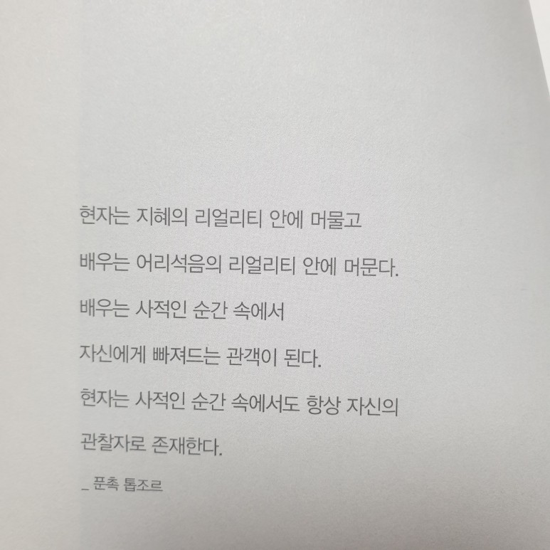 며칠 전부터 관찰 노트를 만들 줄 알았어배우로서 관찰은 필수이고 무엇보다 관찰은 재미있다.과거에는 꽤 오랫동안 관찰과 관련된 책이 있었는데, 오늘은 오랜만에 <투비 오아낙투비> 장성식을 열었다.학점은 행제 공부 때 구입한 책인데 개인적 연기법에 대해 구체적으로 흥미롭게 썼다. 오래도록 공부하고 싶은 책