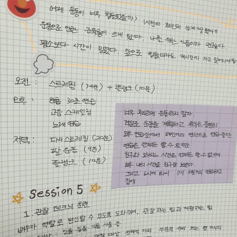 내 배우인지는 이래저래 기록을 꼼꼼하게 하려고 해.훈련에 영향을 준 모든 기록오늘은 연습실에 가서 친구를 만나야해서요. 친구를 만난 내용까지 썼다.