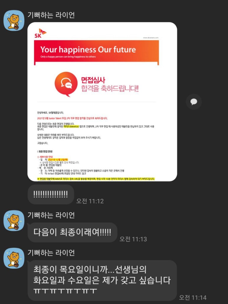 결과가 나오면 바로 연락하겠다던 00씨.정말 확인하자마자 캡쳐해서 연락주신 거예요.(´;ω; ))