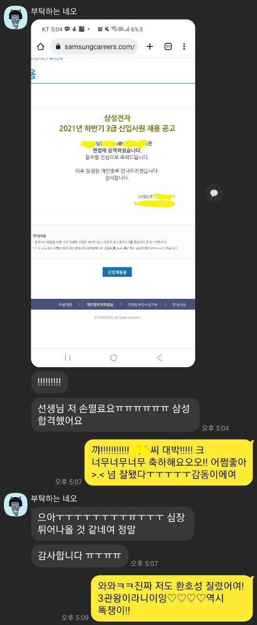 사실 삼성전자뿐만 아니라 두 대기업의 최종 합격을 한 상태였어요! (게다가 첫 면접이 최종 합격이었어요!)))